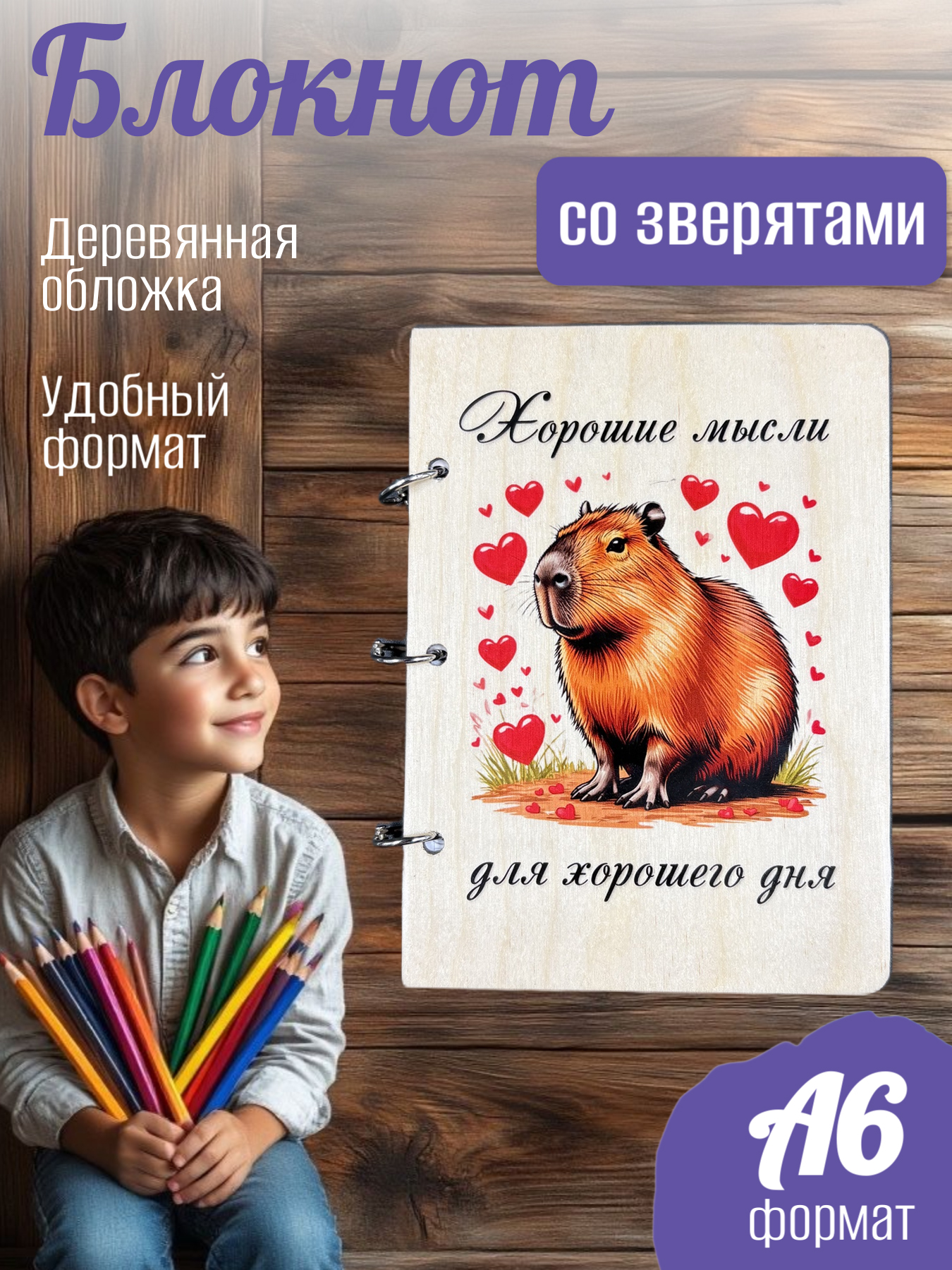 Деревянный блокнот A6 с яркой картинкой — ваш стиль и удобство.