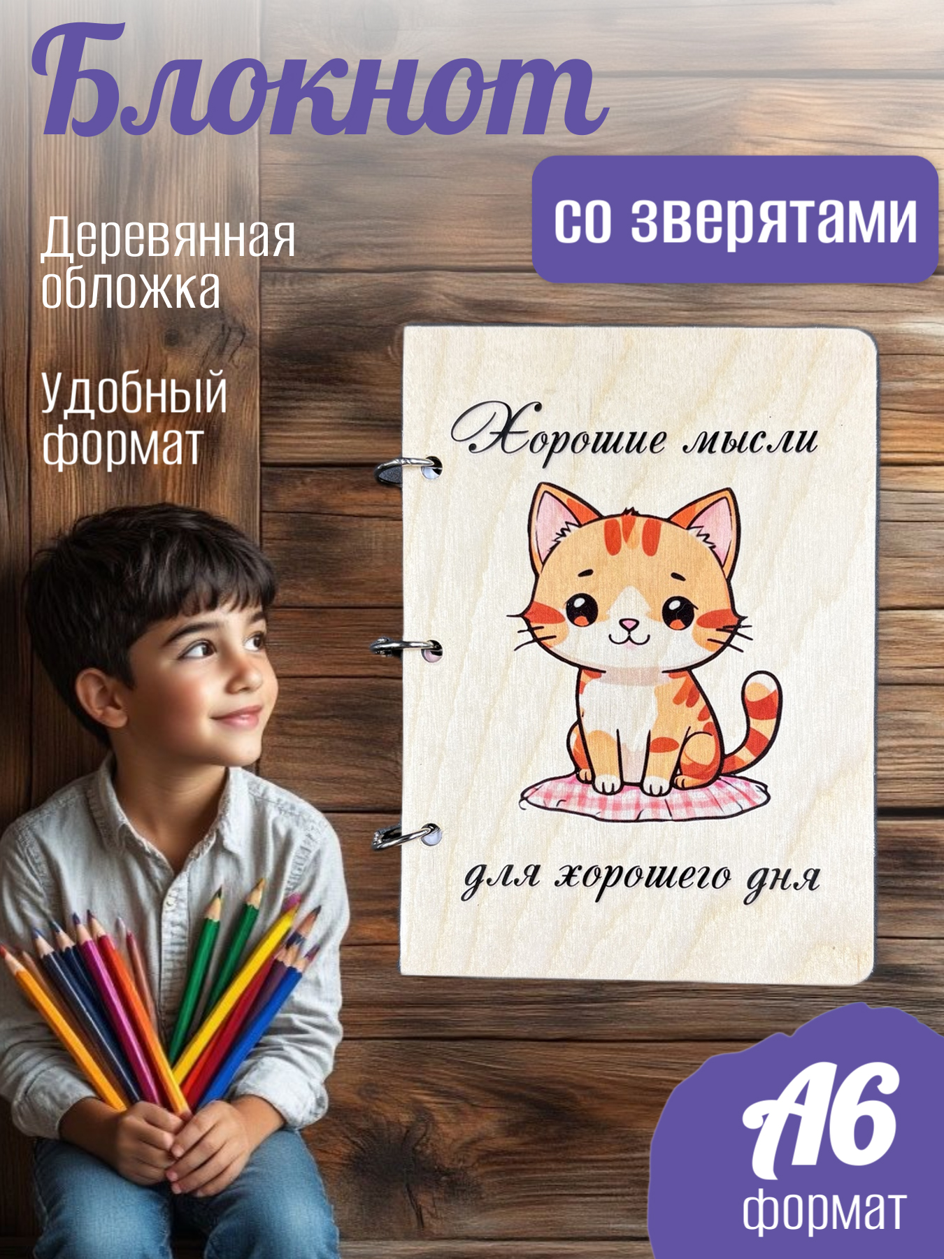 Деревянный блокнот A6 с яркой картинкой — ваш стиль и удобство.