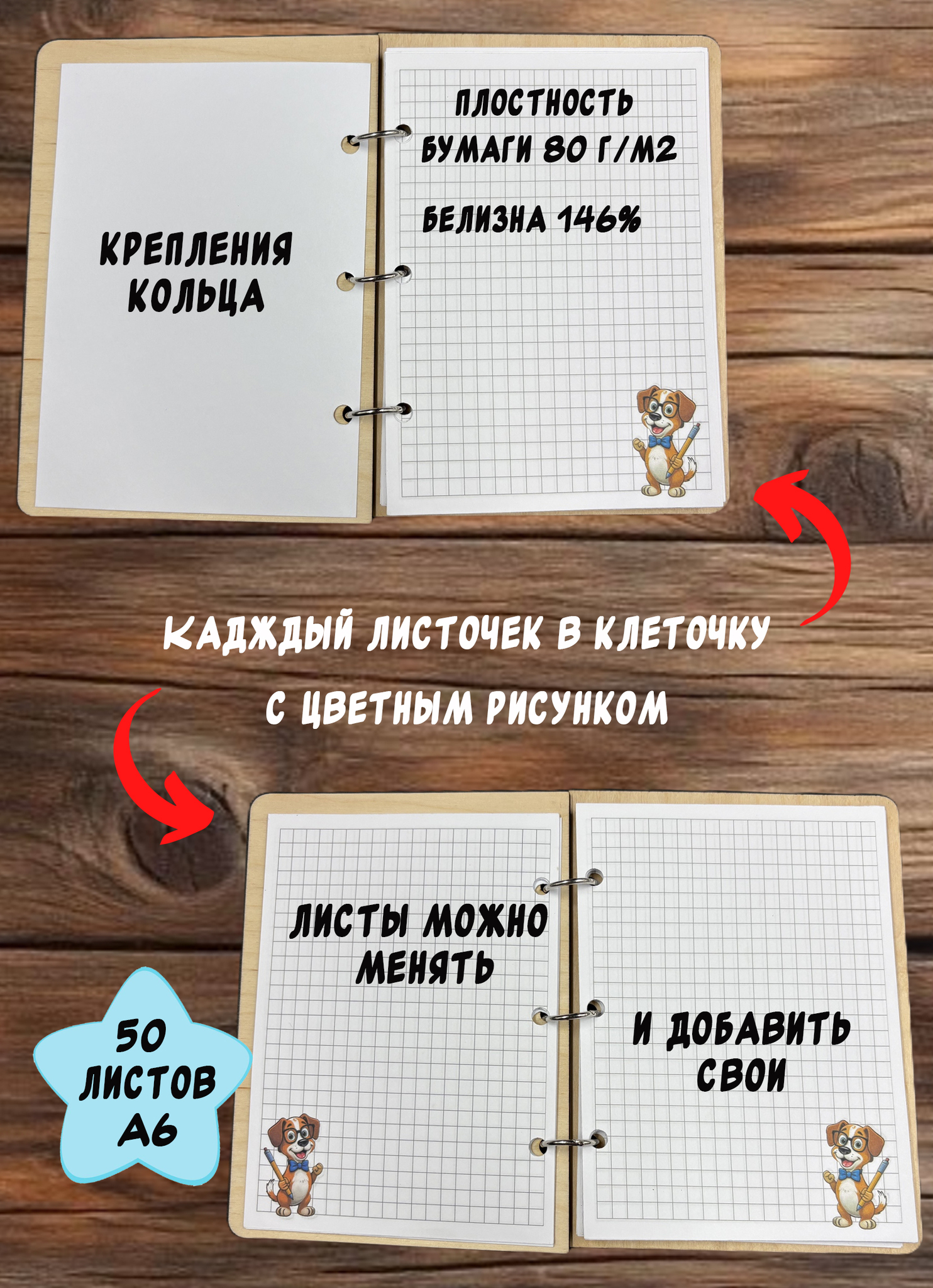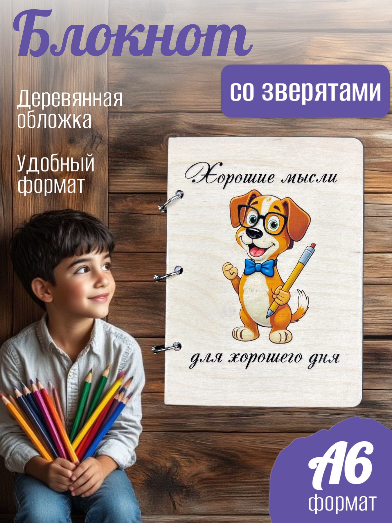 Деревянный блокнот A6 с яркой картинкой — ваш стиль и удобство.