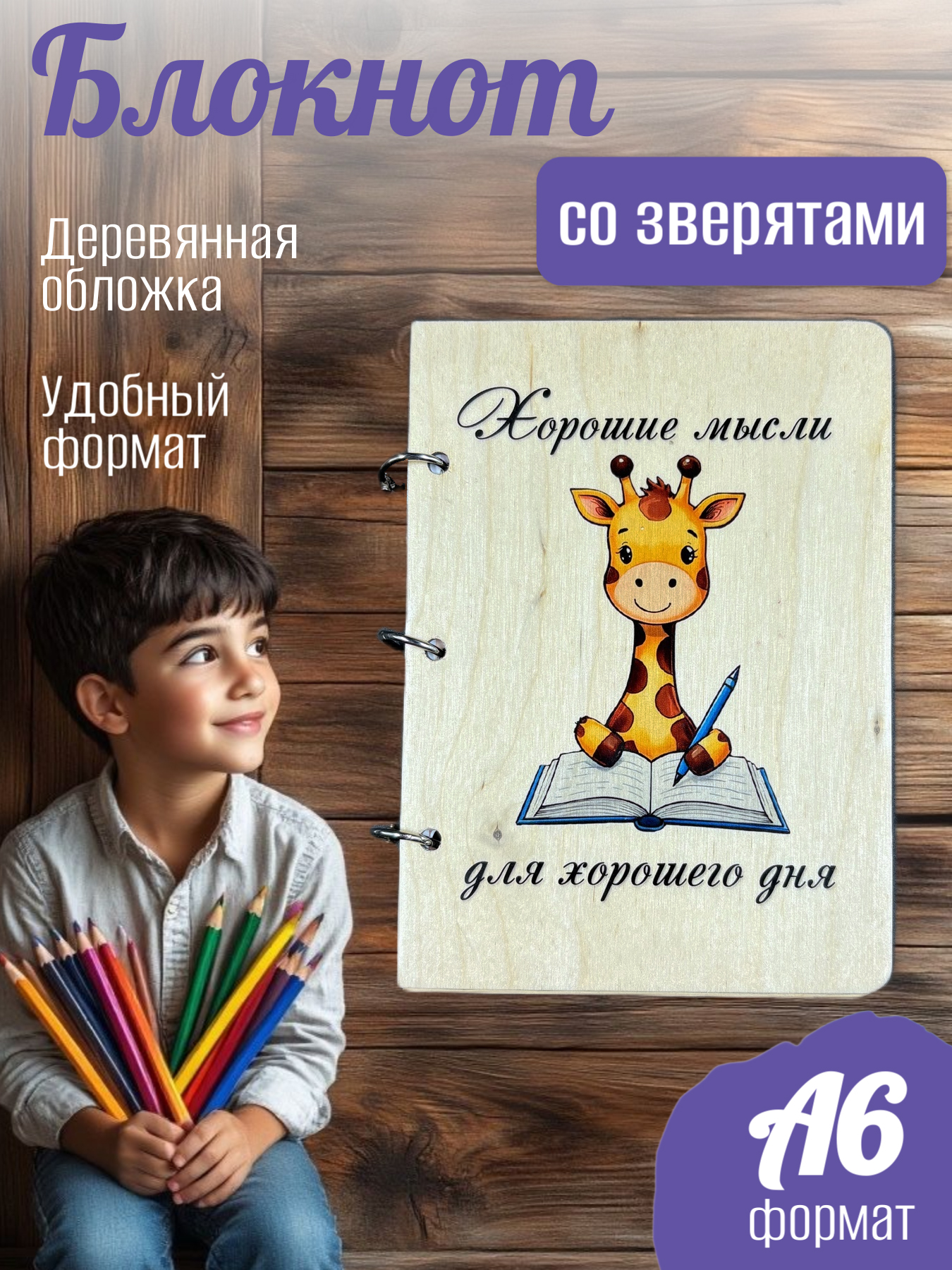 Деревянный блокнот A6 с яркой картинкой — ваш стиль и удобство.